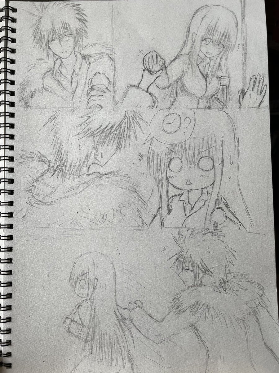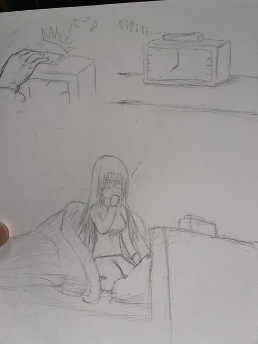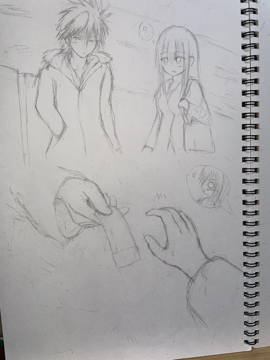 次の展開が浮かばぬゆえ、 前回の奴を加筆致しました! 相変わらずキャラの服どうするのか 曖昧なままでござる まぁ、今日はこれでヨシさ おやすみなさいです。 #絵描きさんと繋がりたい #オリジナル #アナログ