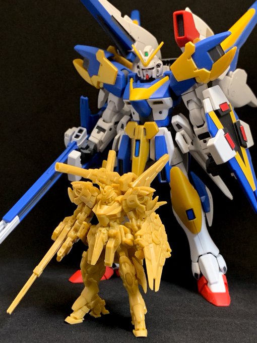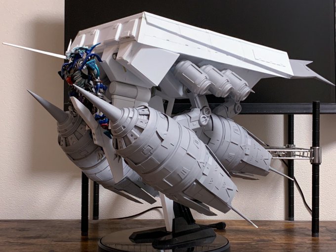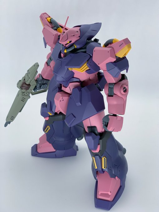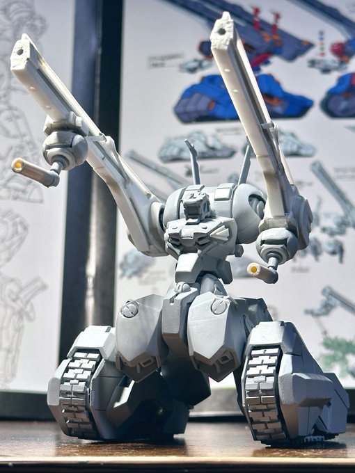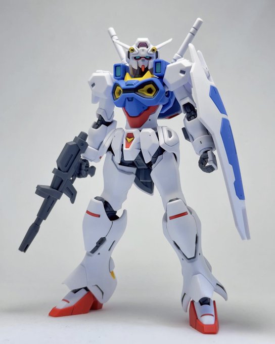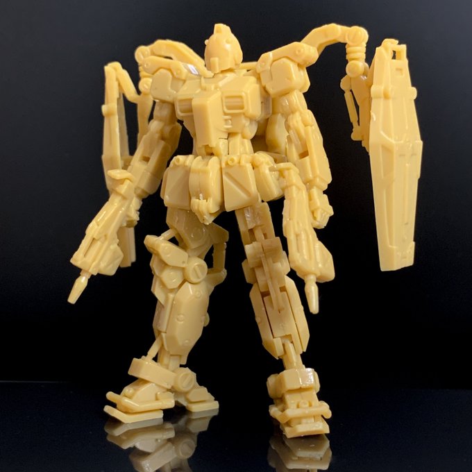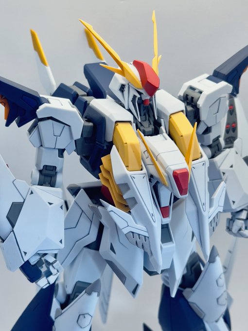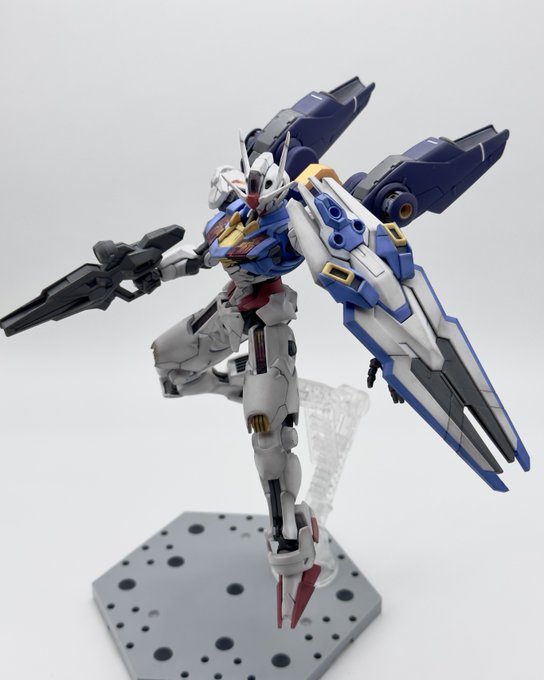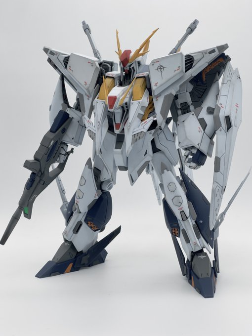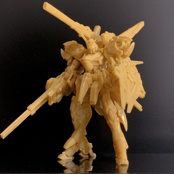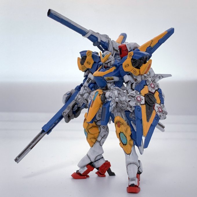サブアームにダブルシールド、サンボル版はこうでないと。左腕の2連装ビームライフルはなくビームスプレーガン両手持ちになってました。膝裏デザインはFAガンダムと同じシリンダー処理か #ガンプラ #ガンダムアーティファクト