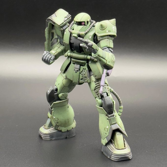 ドム。重モビルスーツは安定感が違う。脚部フレアの切り欠きがアーティファクト系の味を出してますね。ラケーテンバズの軸がちょい曲がってる気がするけど個体差か? #ガンプラ #ガンダムアーティファクト