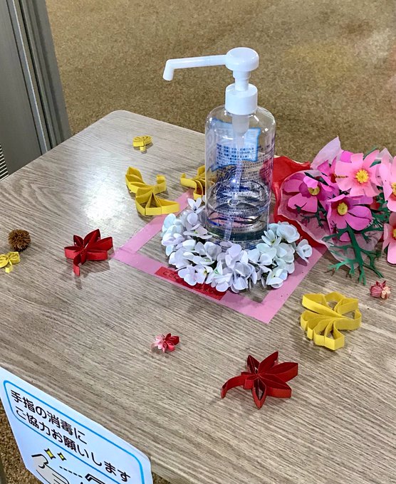 冬の間、消毒液な下に敷いていたコレ。 作り直そうと計画してるんだが、作りかた忘れたwww #ペーパークラフト twitter.com/tonaoto4/sta…
