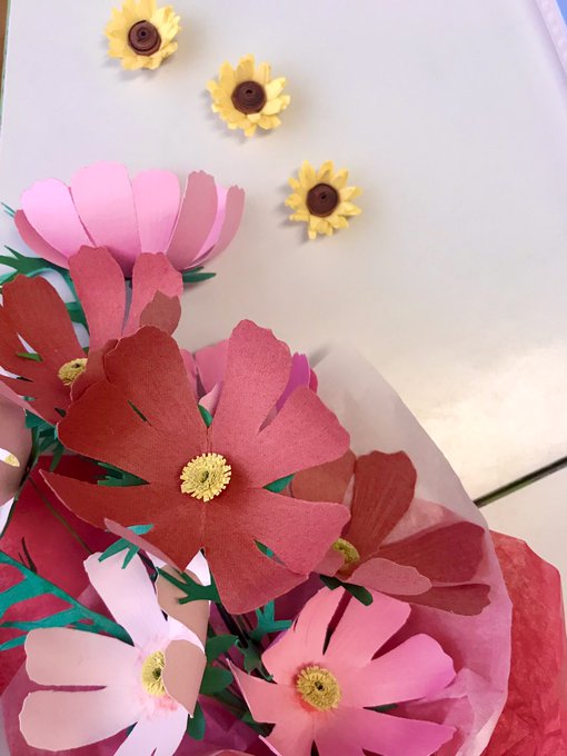0 6 おはようございます。 向日葵がどんどん枯れていくと、入れ替わりにコスモスが咲き乱れてきました。 昨年作ったペーパークラフトのお花は未だ健在です😚 #ペーパークラフト 22/09/13 08:13