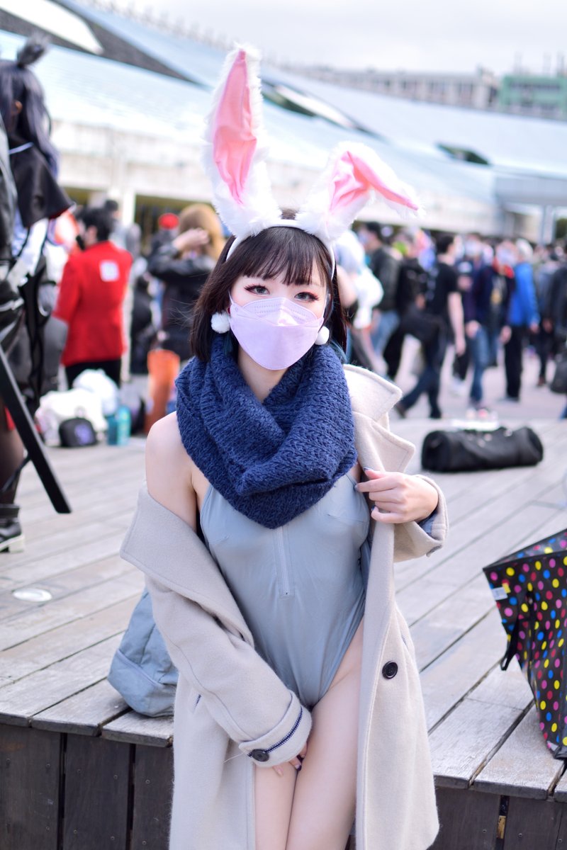 2022/01/09 PF35 Day2 MD:萌漾MengYang( @MengYang0810 ) 📷:隔壁的滑鼠 大衣裡面是瑟瑟的兔女郎這樣的搭配真的有夠香🤣💕,超感謝萌漾還特地告訴我在哪邊定點讓我認親🥺🙏🏻 #cosplay #コスプレ #bunnygirl