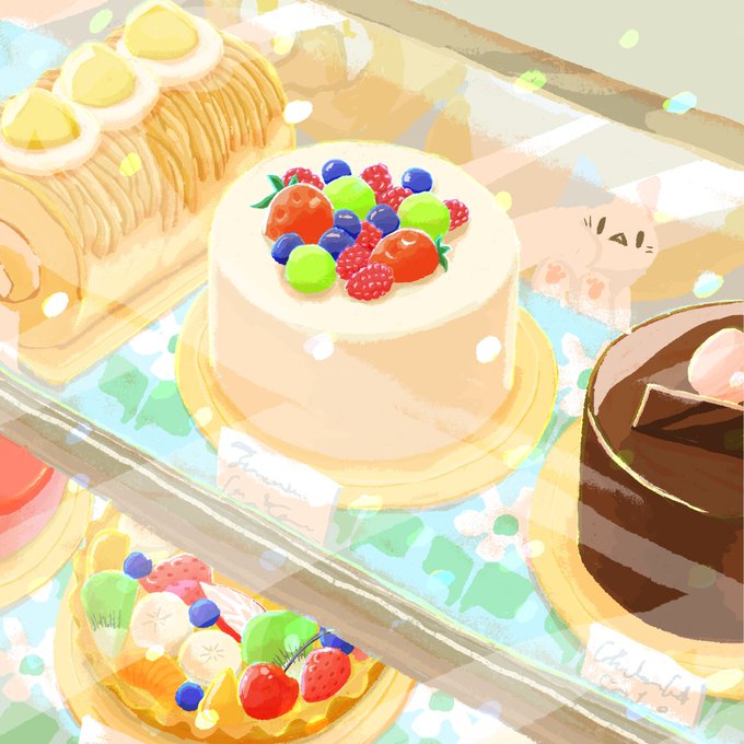 23 269 むにゅっっっ #イラスト #illustration #AdobeFresco #食べ物イラスト #ケーキ #レトロ #ねこ 22/11/14 06:54