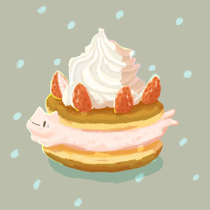 1 29 たっぷりいちごクリームのどらやき。 #イラスト #illustrationart #AdobeFresco #ねこ #スイーツ 23/01/25 07:00