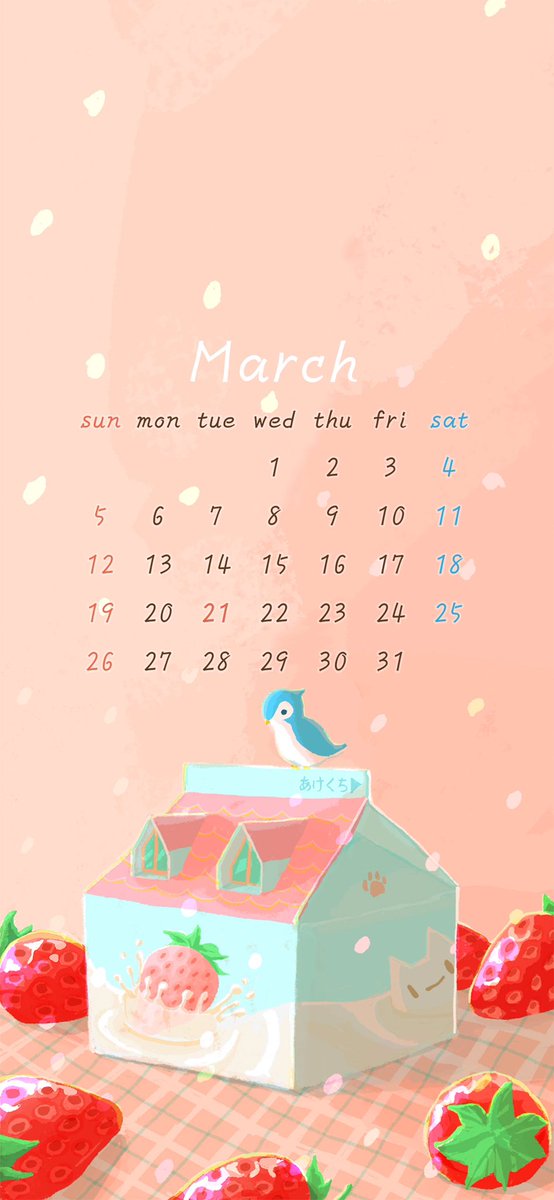 珍しくフライングでお届けする3月のカレンダー。 個人使用の範囲内でご利用下さい。 #3月 #カレンダー #イラスト