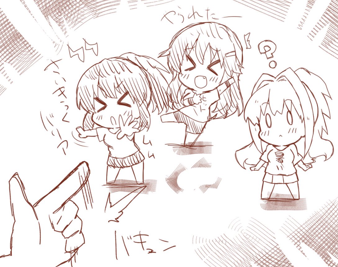 76 191 なんとなくちび茜未央描きたくなった ふぁい!ふぁい!あーちゃん3位めでたい!次は3人で頑張ろう!! 23/06/07 18:34