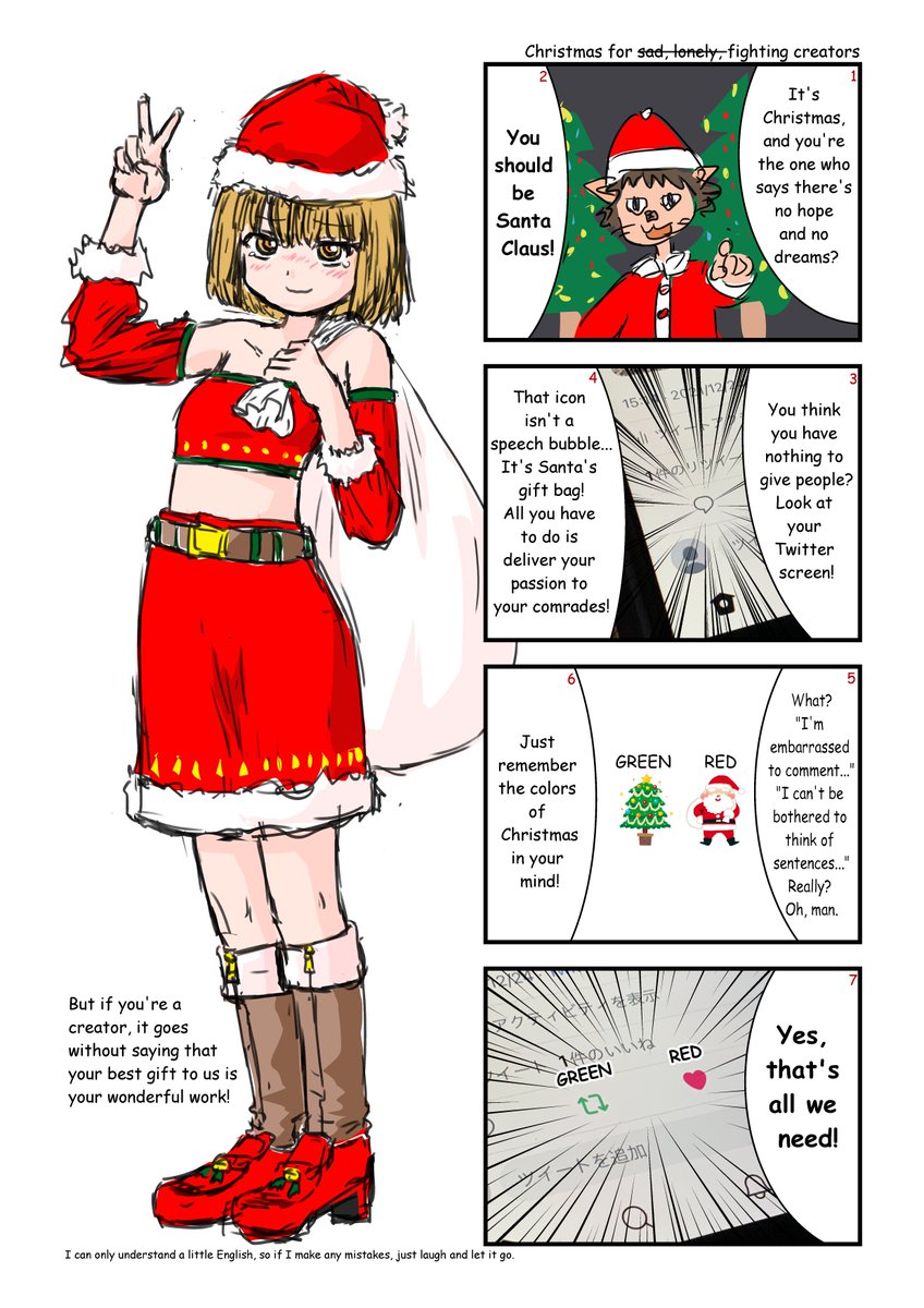 クリスマスの4コマ漫画です😇 It's a 4-panel comic about Christmas. The second one is the English version! Merry Christmas! #創作漫画 #漫画が読めるハッシュタグ #イラスト