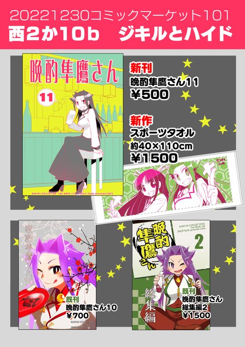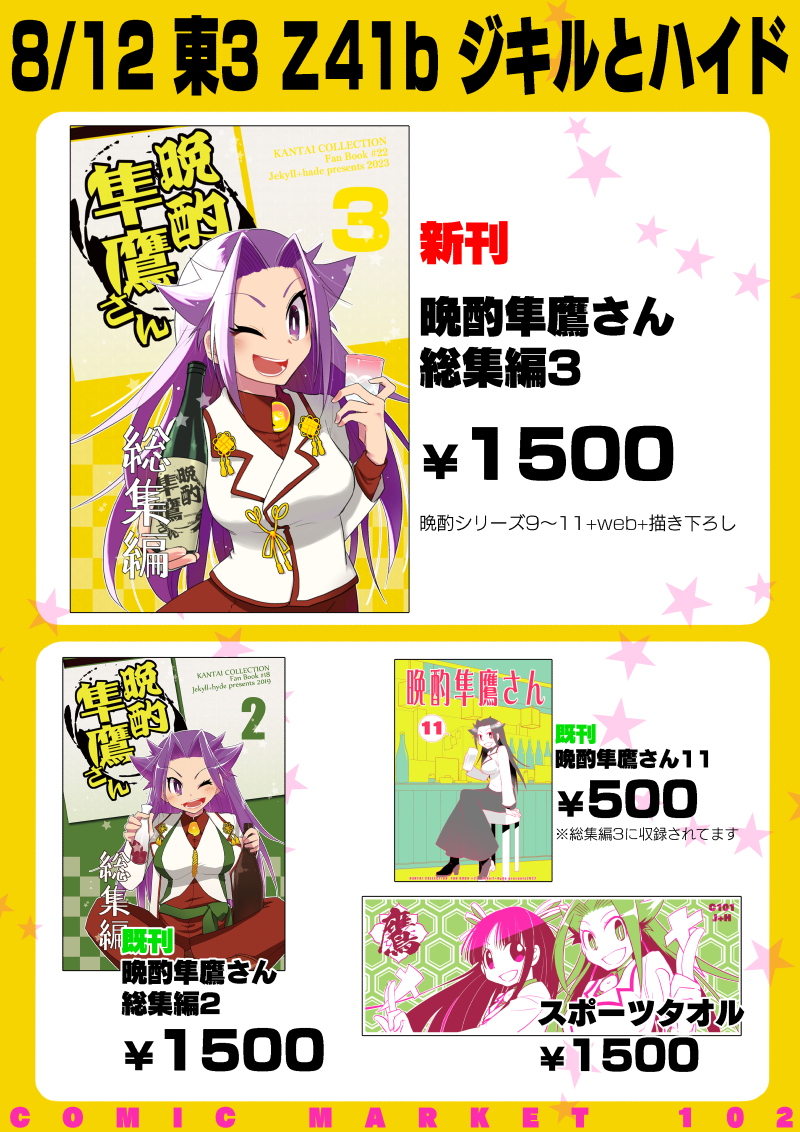 【通販案内】 ◆C101新刊『晩酌隼鷹さん11』その他既刊はメロンブックスさんにお願いしています melonbooks.co.jp/detail/detail.… ◆新作グッズ『マフラータオル』はBOOTHにて受付中 jekyll-hyde.booth.pm/items/4449525 よろしくお願いいたしますヽ(=´▽`=)ノ