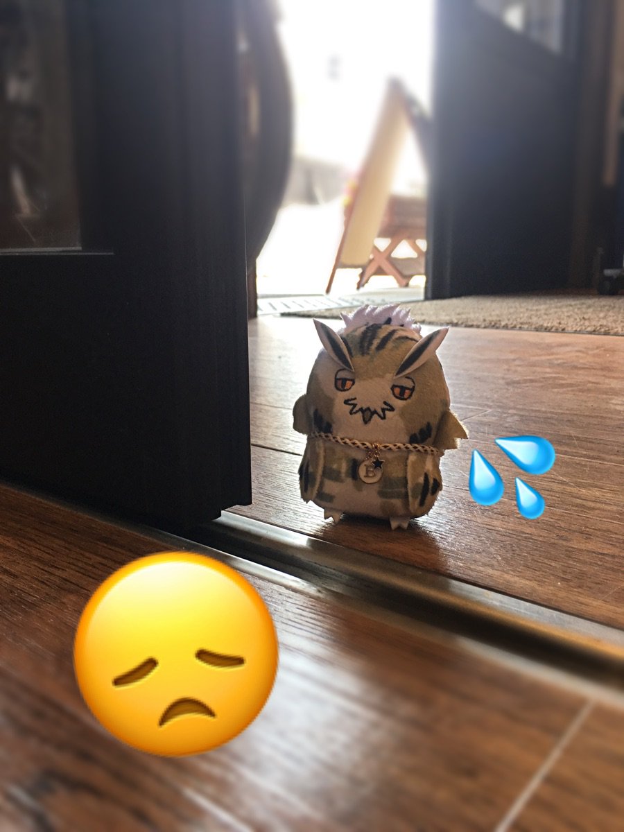 ①🍖どあを あけたら あかあし かえってきてないかなぁ… ②🍖だいすきな おにくなのに おいしくない…😩 ③🍖ひとりで ねるのは さびしいなぁ 🍖あかあし どうしてるかな😢 #ほよほよフクロウさん…?