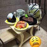 🍖で…できたー!😂 🍙ごはんがたりなくなるかと ひやひやしました😑 🍖つっきー ありがとな!🤗 🍙つぎは かいじょうせつえいです🙂 🍼🍖くろお まだ? 🐈⬛もーちょっとかな🤔 🍼🍙いいにおい🤤 #ほよほよフクロウさん