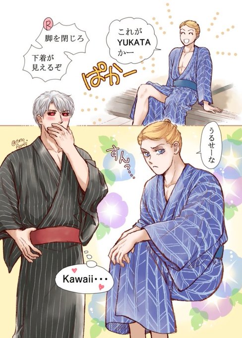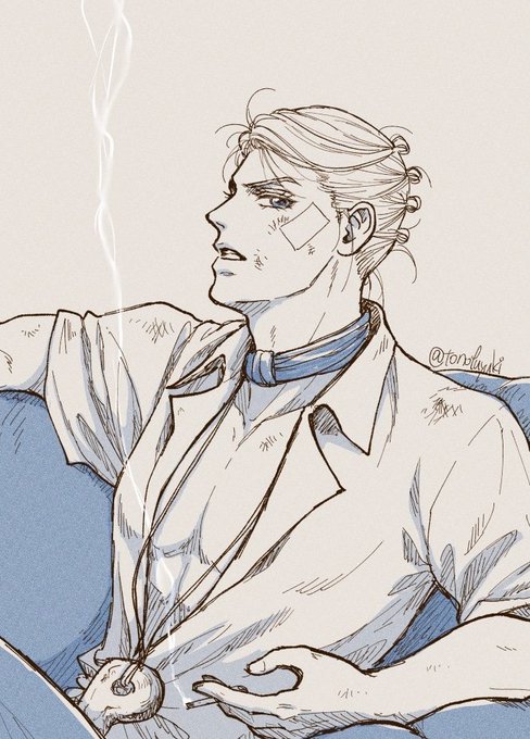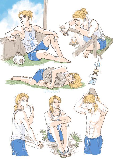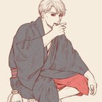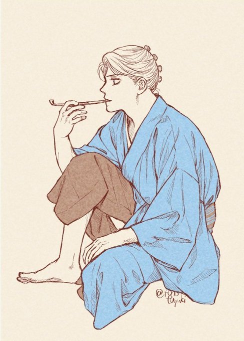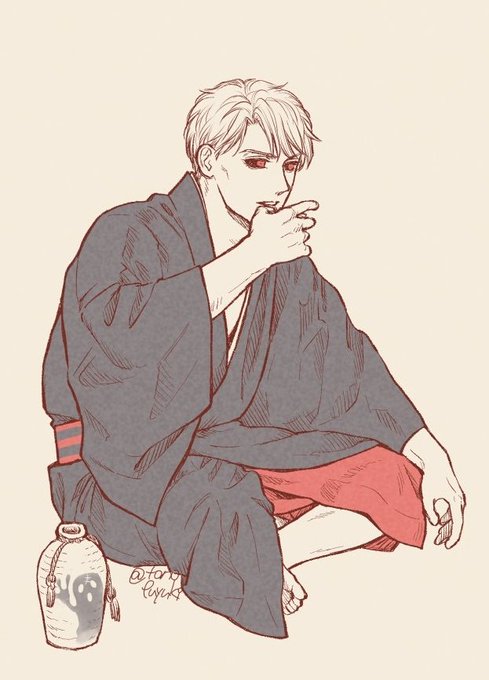 29 141 和装兄貴。制服時間を設けずに模写。ポーズカタログって楽しい。 視線の先にリゾットがいてほしいので、そのうち描きます。 23/07/13 18:48
