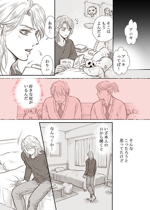 21 73 やさぐれリゾットと優等生アニキ。違う世界線の学パロ。 いま描いてる学パロは幼馴染みのピュアな恋だけど、バチバチに対立しながら深みにはまっていく危険でエ口い関係もいいな。 23/06/26 01:42
