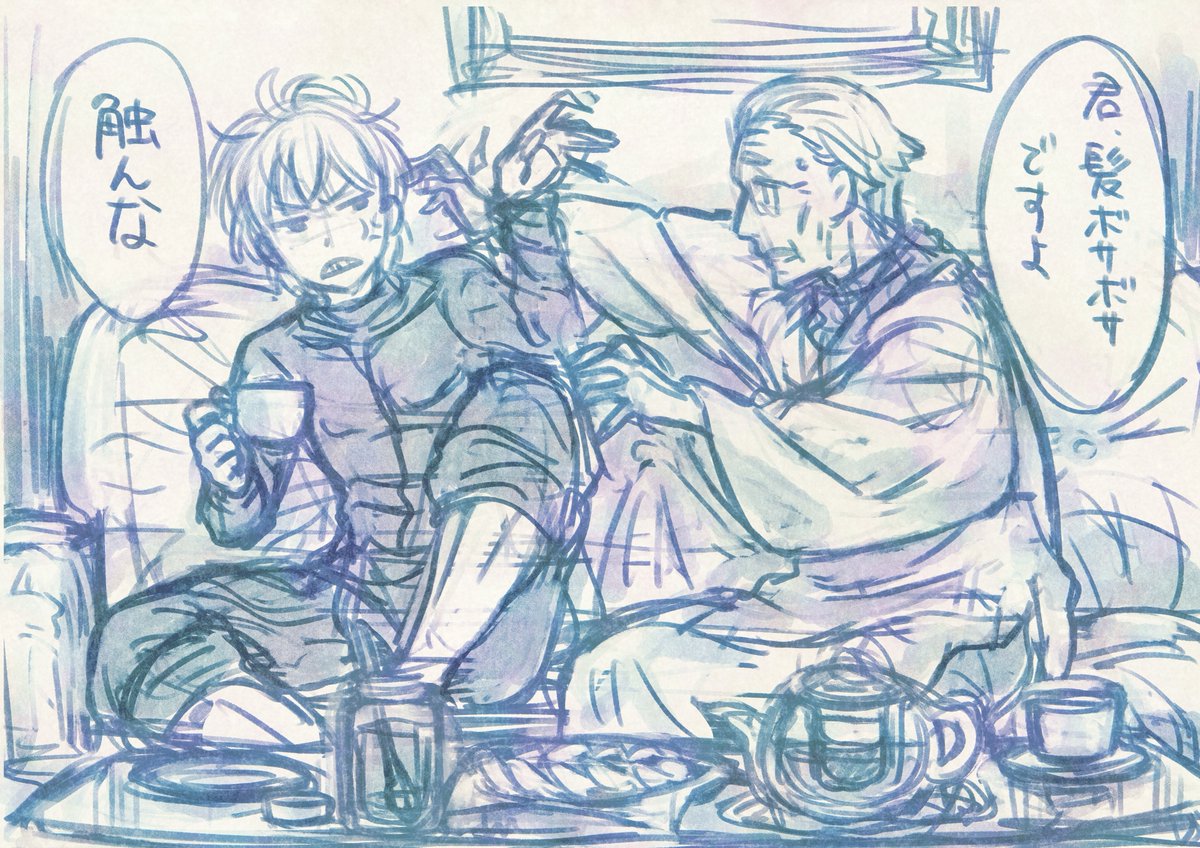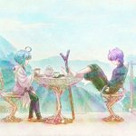 #今月描いた絵を晒そう これはサブ垢より。本編の狂乱戦争編5話に出てくるカフェテラスのイメージラフが出てきたのでちょっと手を加えたり息抜き楽描きしたり、サブの方が何かしらちょこちょこ描いてました。