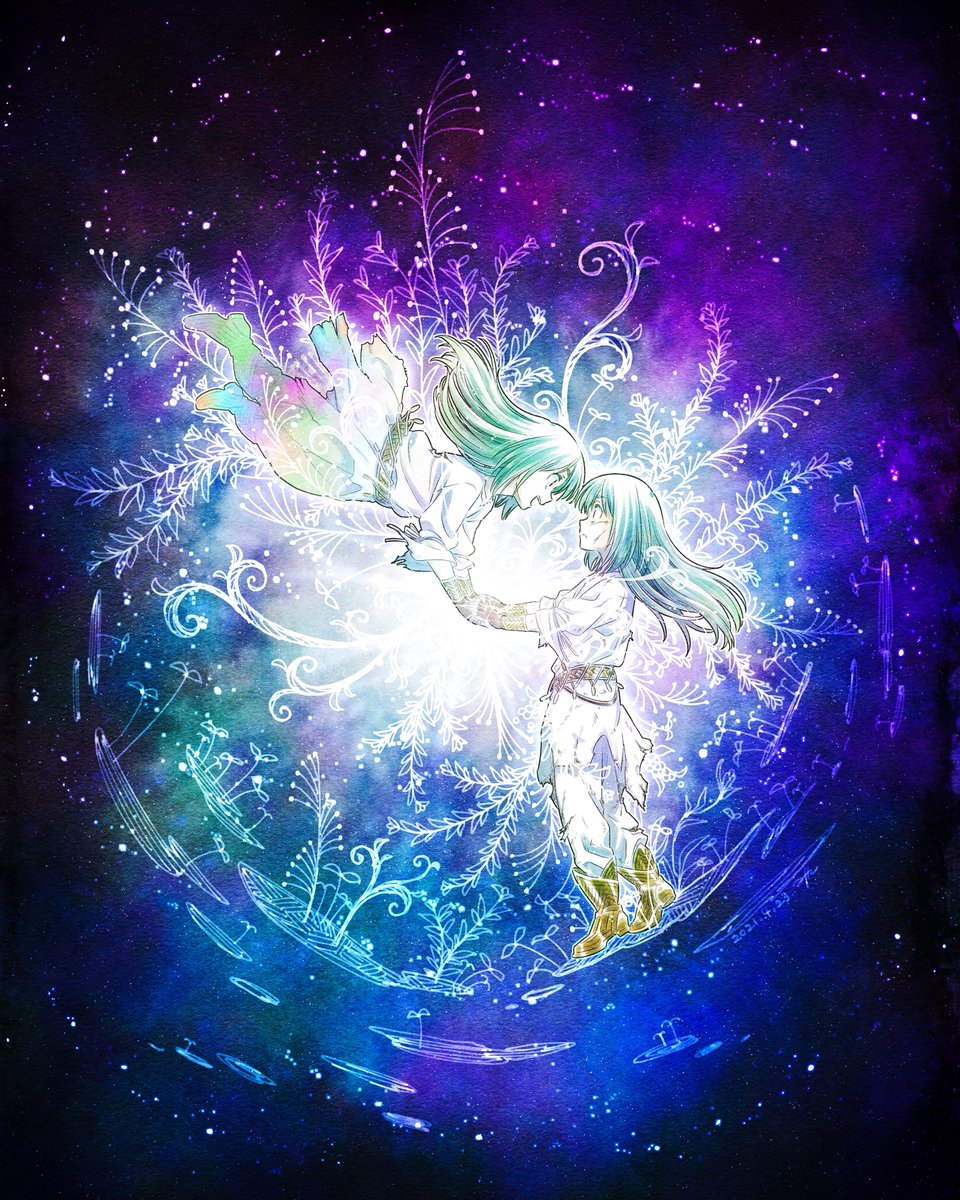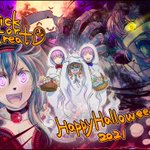 #2021年自分が選ぶ今年の4枚 この辺かな。 1枚目→水彩塗りを模索しはじめた頃の絵。ズィール(左下)とロジエム(右上) 2枚目→引き続き水彩模索。ロシェム(右)とナニカ(左) 3枚目→毎年恒例、時間との勝負だったハロウィン絵。 4枚目→イルミネーションやビル群を色々試行錯誤したクリスマス絵