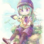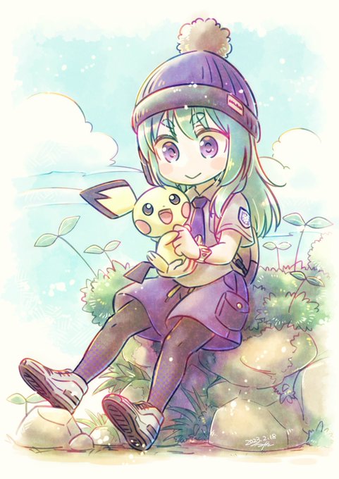 #今月描いた絵を晒そう サブ垢より。これは気分転換に放置してたSVをちょこちょこやりながら描いたSVをる楽描き🌱 ポケモンは金銀までしかやってなかったので、SVで野生のピチューがいる事に感動した…(金銀では卵から孵すしかゲットする方法が無かったので