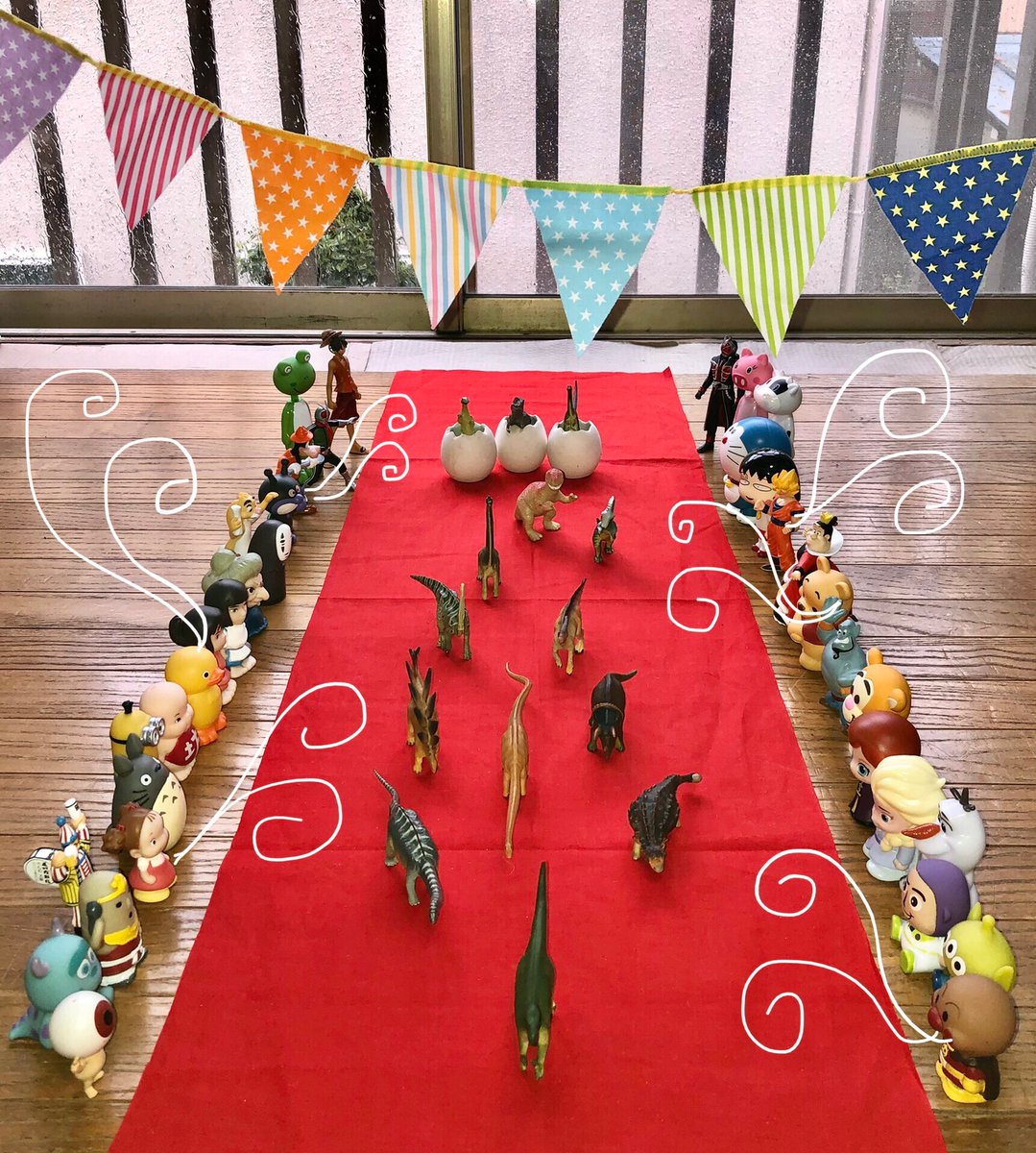 本日 #恐竜の日 恐竜の卵の化石が世界で初めて発見された旅の出発日。 パクコ部屋で恐竜パレード開催中(笑) #オモ写