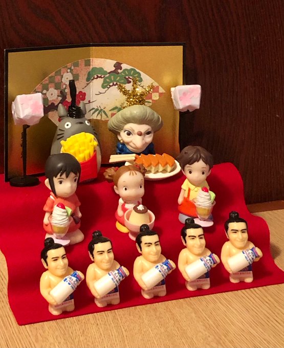 今年の雛段飾りは、 ポテトトロとラー油婆婆 三人甘女 五人力士 #豆魚雷オモ写 #オモ写