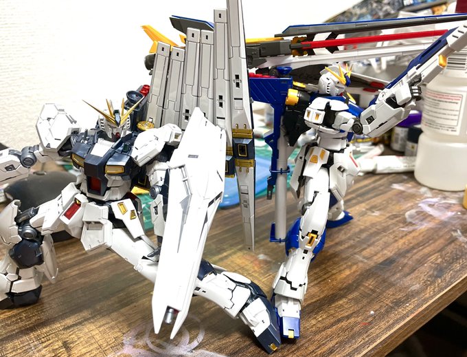 #ガンプラの画像貼るとRTされると聞いて #ガンプラ好きと繋がりたい #ガンプラ改造 #νガンダム アムロ・レイ専用 νリボーンズガンダム完成👍 スジボリと塗り分けかなり頑張りました。 カッコよくできたので観てやってください😆 下に続きます↓