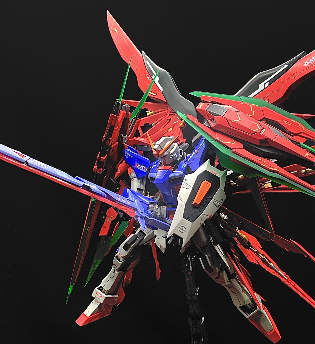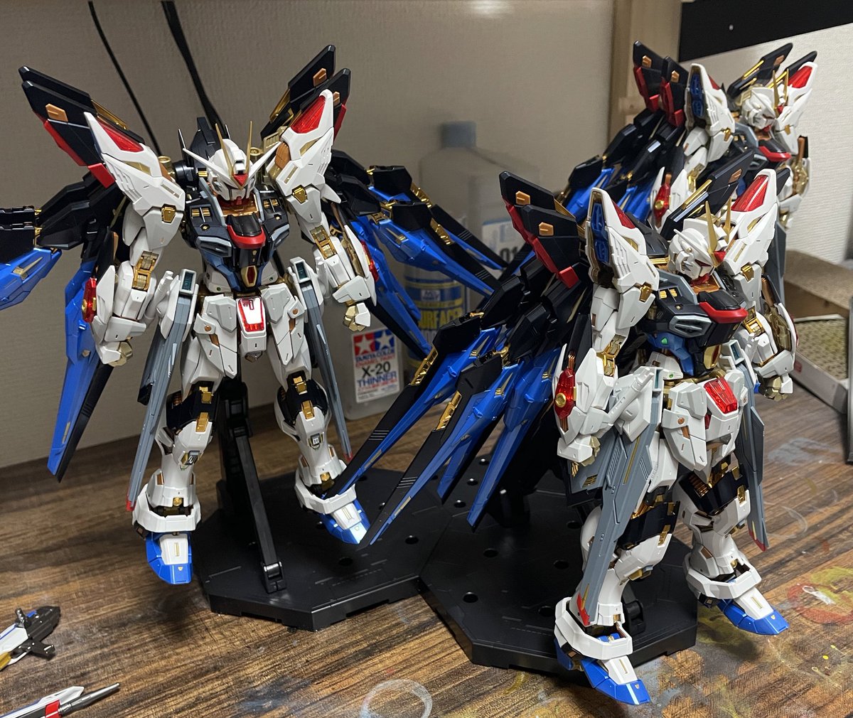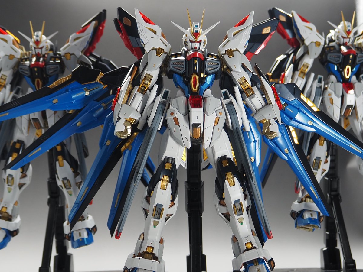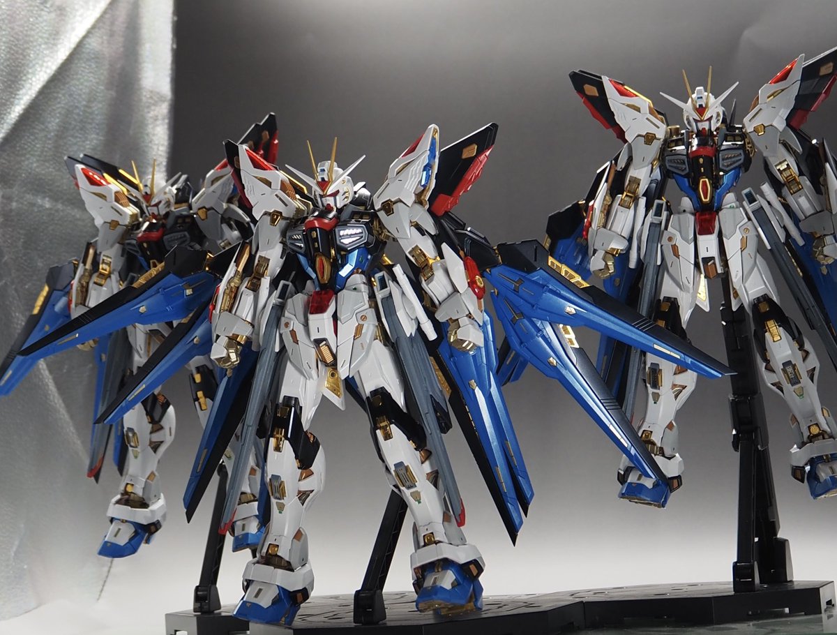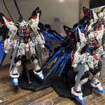 #ガンプラ #ガンプラ好きとつながりたい #ガンプラの画像貼るとRTされると聞いて mgex ストライクフリーダム 3機全塗装しました! 3日間で48時間作業したので疲れましたが、それ以上に楽しすぎました😆 残すところデカール😫とデカール😞とデカール☹️とトップコート…