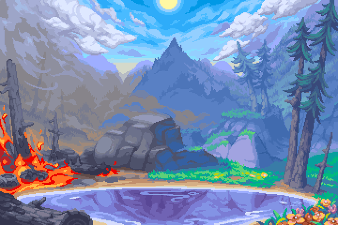 Hi #portfolioday! I'm a pixel artist based in Austin, TX specializing in environments and juicy colors. I just went full time for the first time this month, and have been loving every second of it 😎