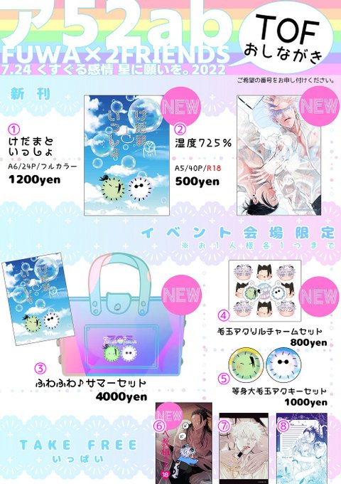 5/4 超妖言2023 おしながき | とーふ #pixiv pixiv.net/artworks/10767… 4日のおしながきあげました!よろしくお願いします 当日は売り子さんがお手伝いしてくれます🌈