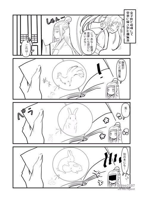 91 926 #忘羨ワンドロワンライ #忘羨 お題「幼少期」お借りしました!!! 江宗主の付き添いか何かで雲深不知処に来た魏嬰が静室前で座り込んでた藍湛に声をかけた(ナンパ)、という捏造です。 21/12/13 02:33