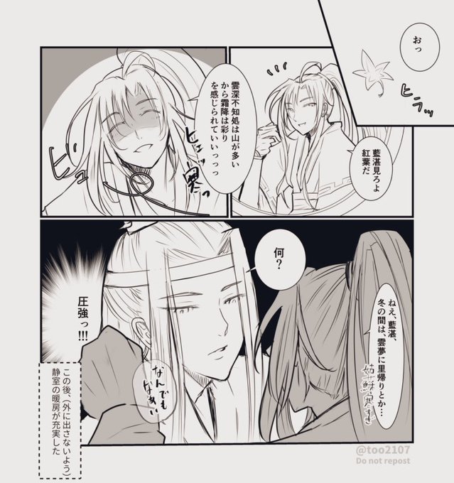 32 320 #忘羨ワンドロワンライ お題「霜降」お借りしました。 霜降は紅葉に染まるあたりとのことですが、雲深不知処はこの時期滅茶苦茶寒そうだなということで… 21/10/23 22:49