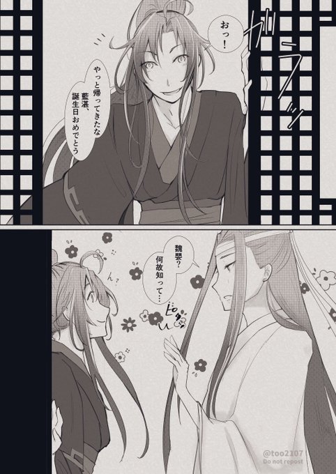 60 643 #蓝忘机0123生日快乐 #藍忘機生誕祭2022 #忘羨 大分遅刻ですが、藍忘機さんお誕生日おめでとうございます🎉 (3、4枚目はおまけの魏嬰献舎前お話) 22/01/27 03:44
