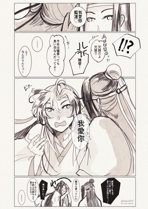 11 164 #忘羨ワンドロワンライ お題「禁言術」お借りしました! 魏嬰が喋ると言いたいことが言えなくなるからつい禁言術で黙らせちゃう含光君です。(老祖誕生あたりの話です。) 21/10/16 22:08