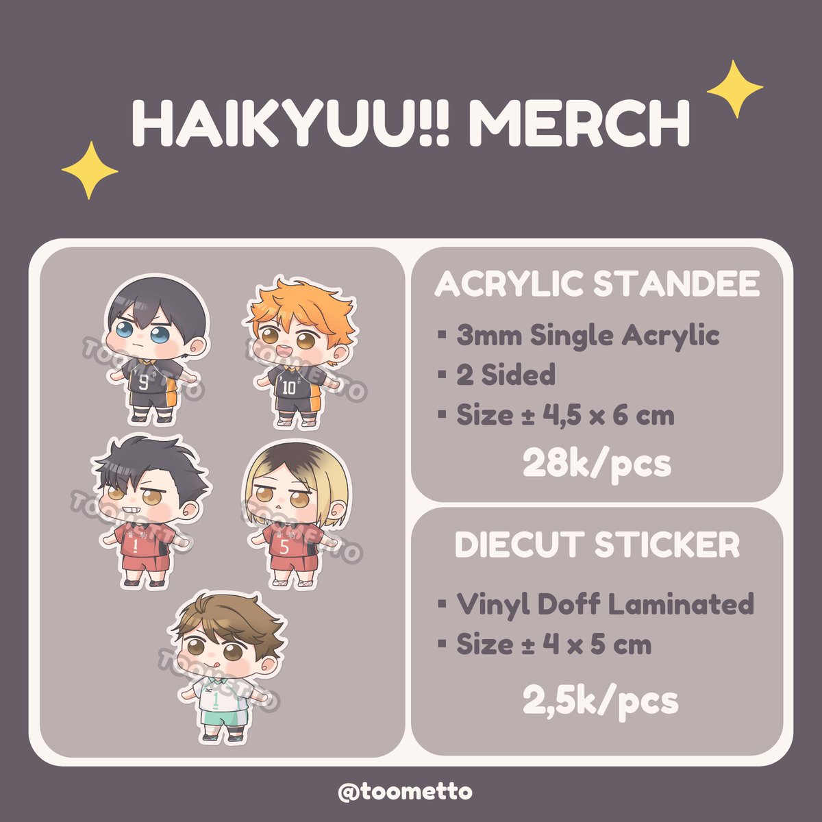 [Rts are appreciated ❤] 🍅 OWARI NO SERAPH, HAIKYUU!!, TOKYO REVENGERS FANMERCH PRE-ORDER BY @toometto 🍅 📅 20 - 25 Feb 2022 🍊 Shopee.co.id/toometto 📦 Shipping from Jakarta Barat Production time around 2-3 weeks Open thread for more details ⬇️⬇️⬇️