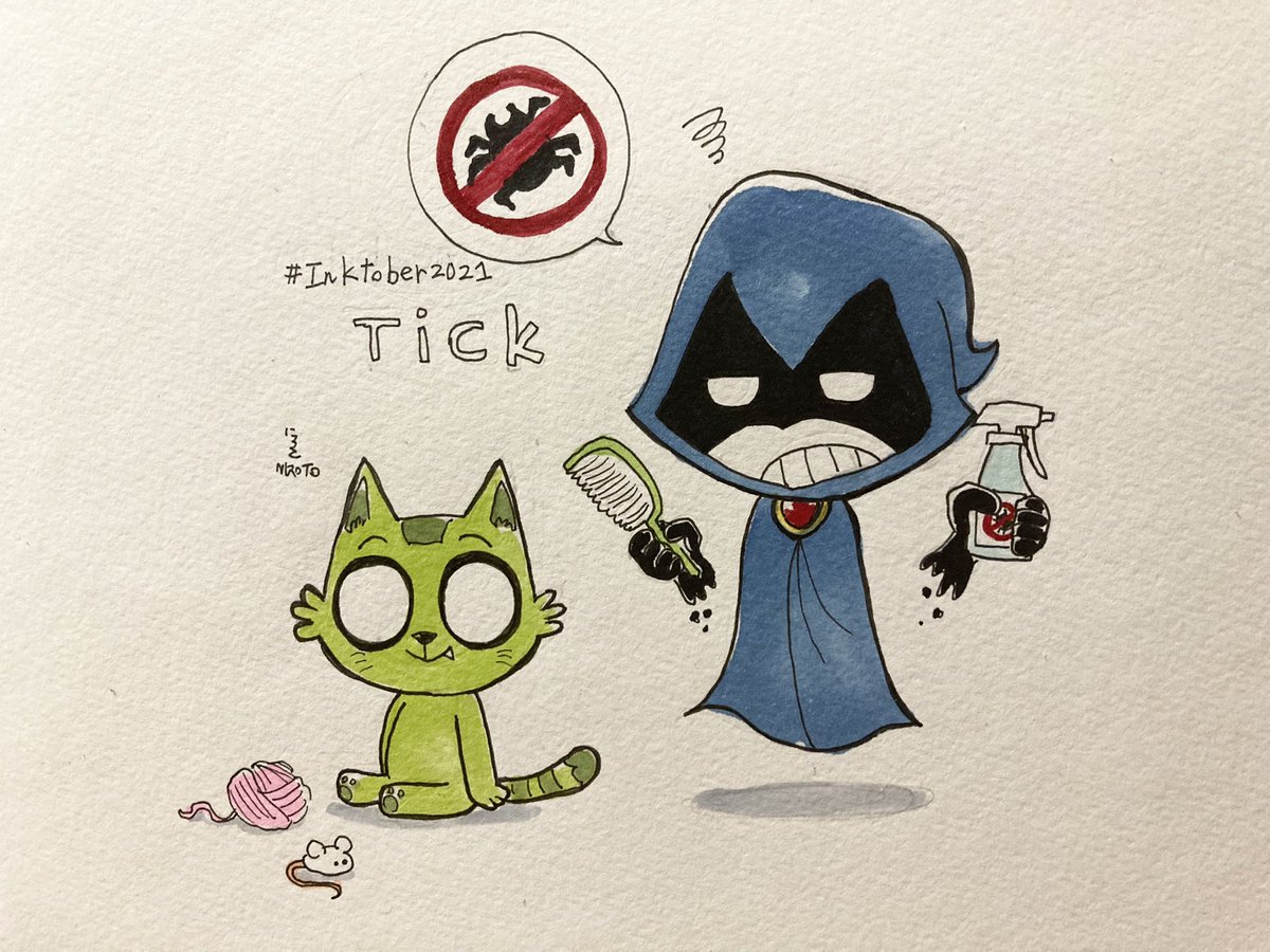 インクトーバー遅くなりましたが今年もゆるく描こうと思います!カラスといえばやっぱりTTのレイブン✨🤩5:Raven #inktober2021