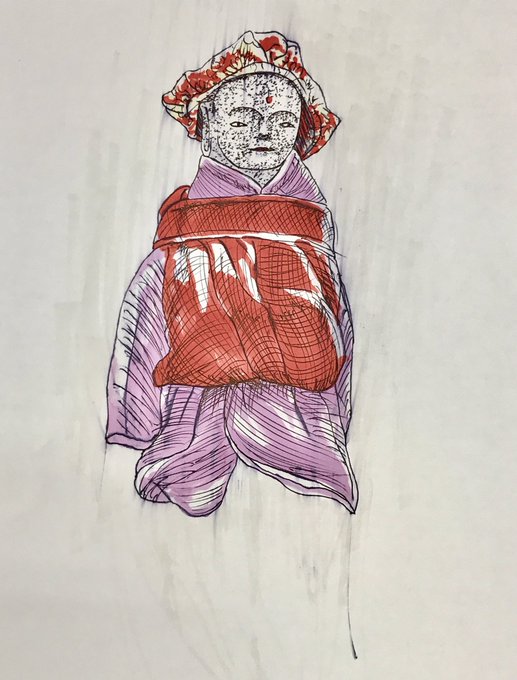 お地蔵さんの顔怖かったんで頭巾被せときます。 #イラスト #地蔵