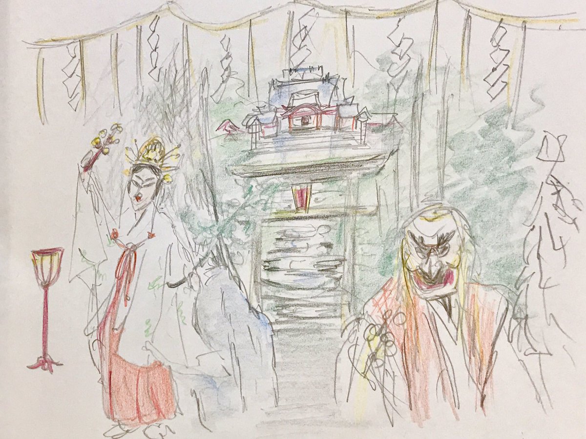 霧島に行ったことないけど、高千穂の世界観を組み合わせて描いてみました。いつか行きたい場所の一つ。 #イラスト #霧島