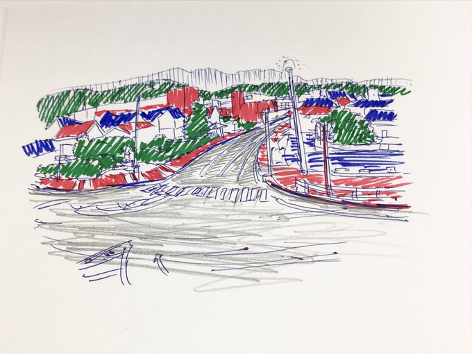 1 5 今日も一歩一歩 #イラスト #街並み 22/11/02 12:57