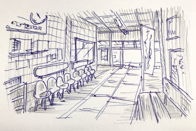 0 5 津軽尾上駅の待合スペース #イラスト #駅 22/10/28 12:56