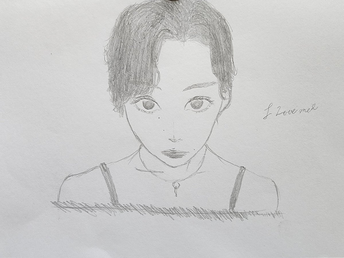 『I Love Me……』 #イラスト #イラスト好きな人と繋がりたい #シャーペン画 #肖像画