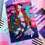I didn't get a chance to take pics of my bishoujo Jason or my Malenia until now! I cant stop w the reds blues and purples in my art lmao These are available at my sh0p! Linked below #ELDENRING #EldenRingFanart #horror