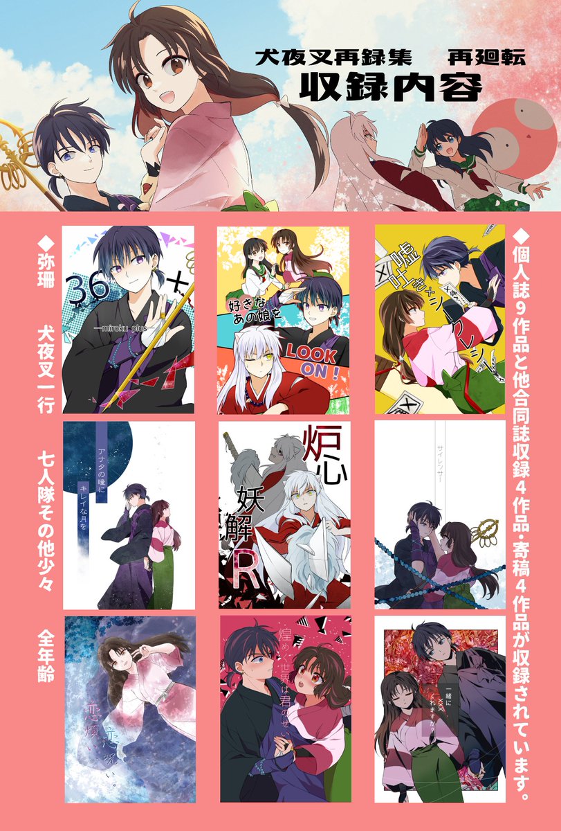49 184 【5/4新刊サンプル&お品書き】 戦国犬絵巻 新刊『再廻転』犬夜叉再録集 A5/320P/¥2000 スぺ:東5 の-5b ポストカードの無配あります。 サンプルはツリーに繋げます。通販準備中。 23/05/01 23:52