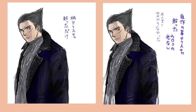 3 7 手描きでヘビとワニの革のウロコ描いてみたけど、あんまり変わらなかった。 気づいてしまったんですけど、ワニの背中の革らしき部分もある…もしかしたら頭…もうそこまで気にしなくていいと思うけど、見れば見るほどすごいコートです色んな意味で。あとトレンチコートっぽいので下の絵は間違ってます 23/02/05 05:03