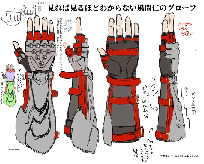 仁のジャケットよりさらに難易度高そうなグローブ版です。自分用に描いてるのでテキトーです。たぶん…こんな感じなのでは…?知らんけど。 2、3枚目は痛そうだなって思って描いたらくがき。