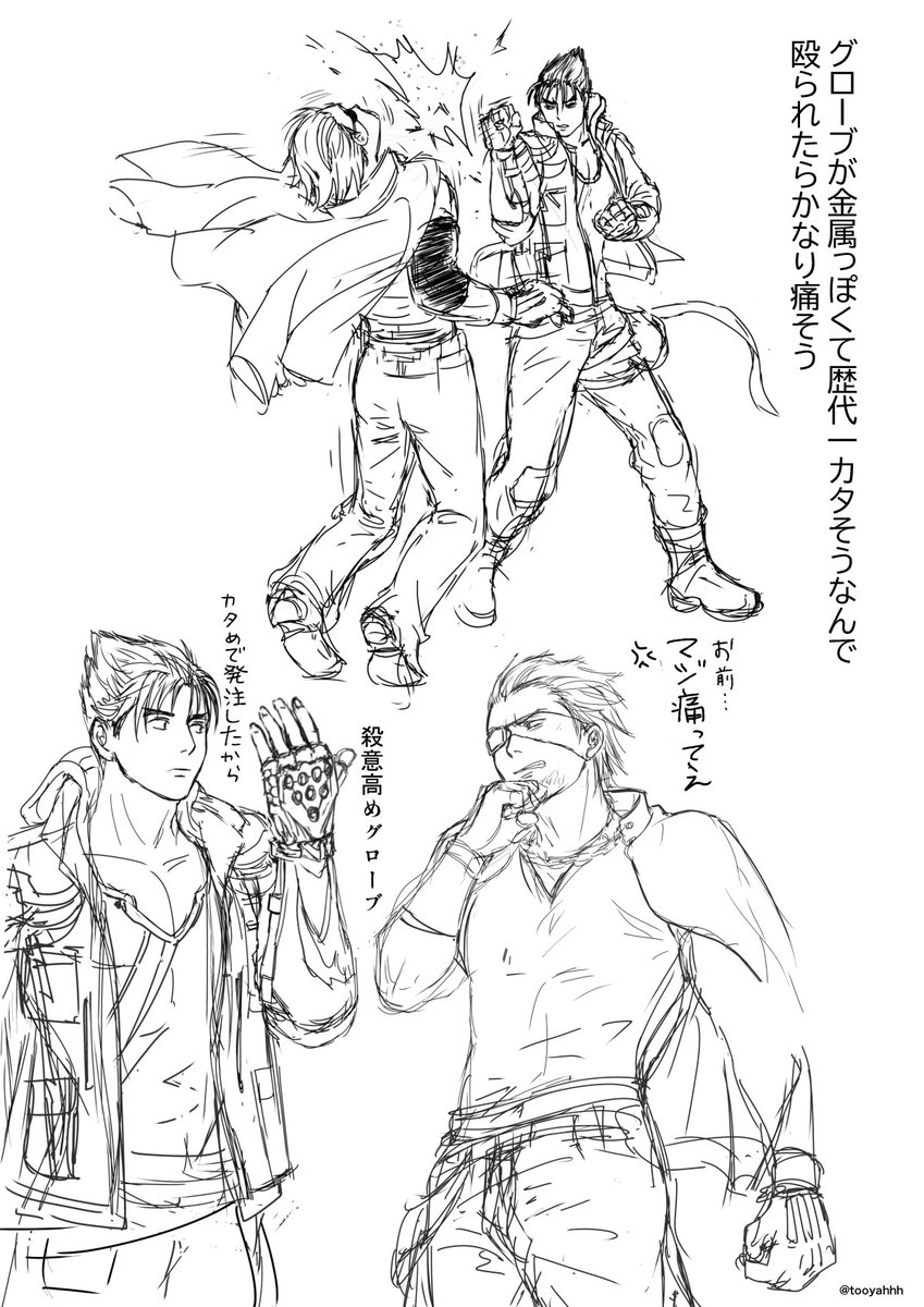 16 59 鉄拳8はコートとかヒモのようなものが増えたなと思って今のところ判明しているキャラ描いてみたらヒラヒラ率がすごかった。 23/02/25 06:21