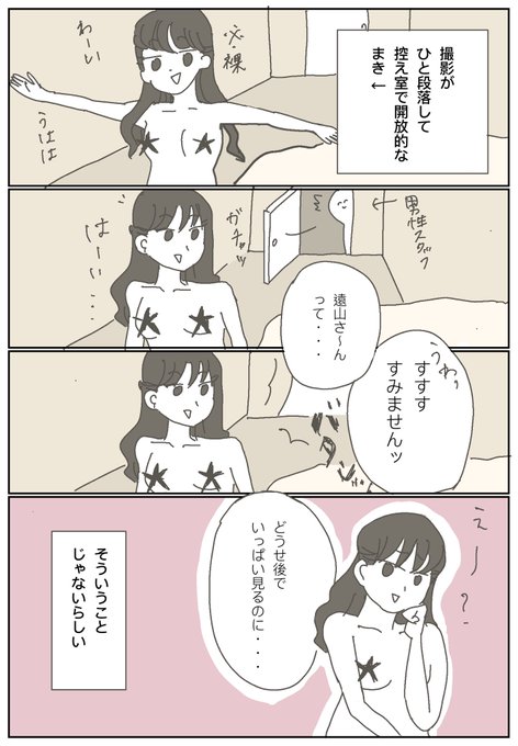 14 52 △V出演初体験記録② この後メイクさんに 「服着て!!」って言われて しぶしぶガウン着た。 #漫画が読めるハッシュタグ #漫画 22/09/10 19:05