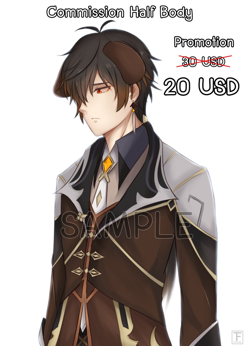 Hello. I open drawing commissions of a half-body scale at a promotional price of US $20, five queues to get Childe and Zhongli in my team. 😂😂😂 #原神 #GenshinImpact #chili #Genshin #genshinimpactfanart #Childe #Tartaglia #Zhongli