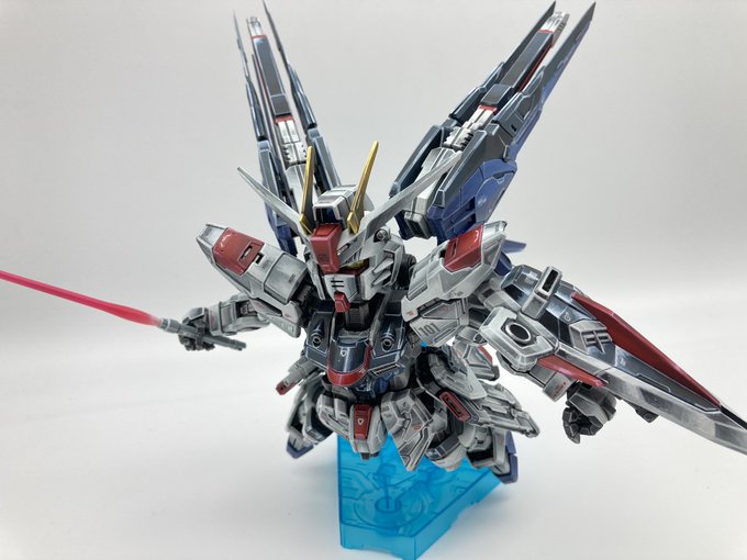 「あれは…伝説の…」 「…パーフェクトガンダムⅢ…レッドウウォーリア!」 MGガンダムアメイジングレッドウォーリア 箱絵を参考にして完成しました。 #ガンプラ好きな人と繋がりたい #ガンプラの画像を貼るとRTされると聞いて #筆塗り