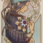 #第5回twstミュシャ企画 #twstファンアート 橙さんの企画にアリア一ブ・ナ一リヤの🐍で参加させていただきました!『桜草』のオマージュです☺️ 上記のタグから素敵な作品が沢山見られますので是非どうぞ✨ ※縦長タップ推奨です