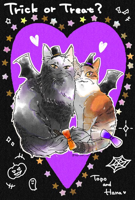 0 19 10月といえば… 🎃Happy Halloween♪🎃 「お菓子をくれても 悪戯するよ♪」 💜🧡💜🧡💜🧡💜🧡💜🧡 #お絵描き #イラスト #猫イラスト #トポハナにっき #ハロウィン2022 22/10/10 07:10