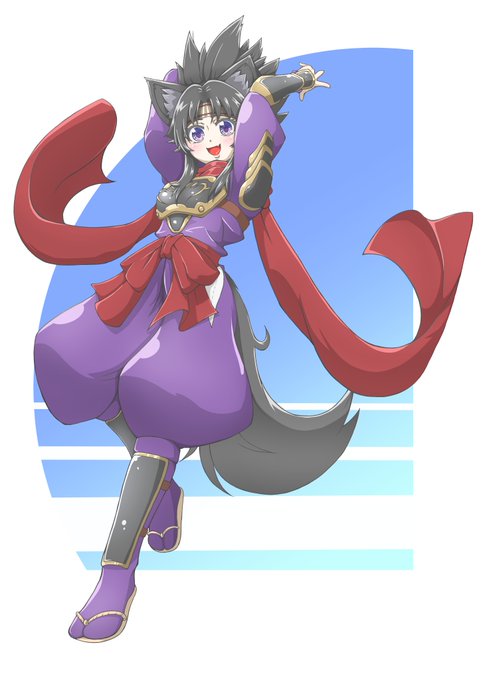よ! っと飛び出したるは室町上がりのきつね娘(*´Д`)✨ 元・特殊部隊仕込みの策謀に技術、徳とご覧あれ! #きつね娘 #アイコン作成 #イラスト