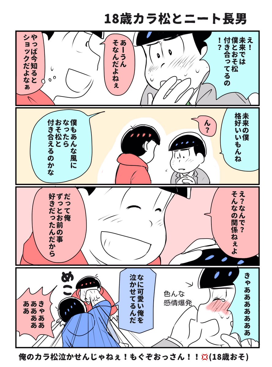 お題【くっつかないで】 1枚目6男より(切実) 2枚目長男より(嬉しい) #おそカラ版深夜の60分一本勝負 @osokara_1draw2