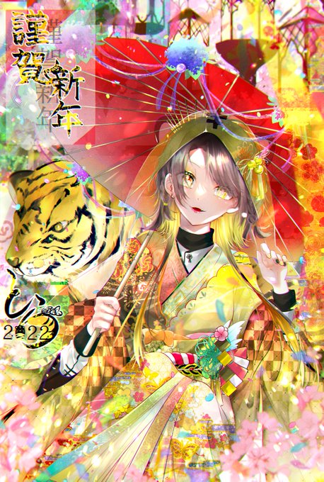 あけましておめでとうございます!! 今年は寅年です故、都良とたくさん絡んでいただけるときっといい事あるかも!? ということで今年もよろしくお願いいたします🐯✨ #HappyNewYear2022 #年賀状2022 #年賀状イラスト