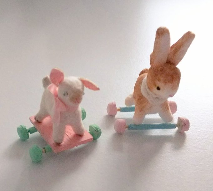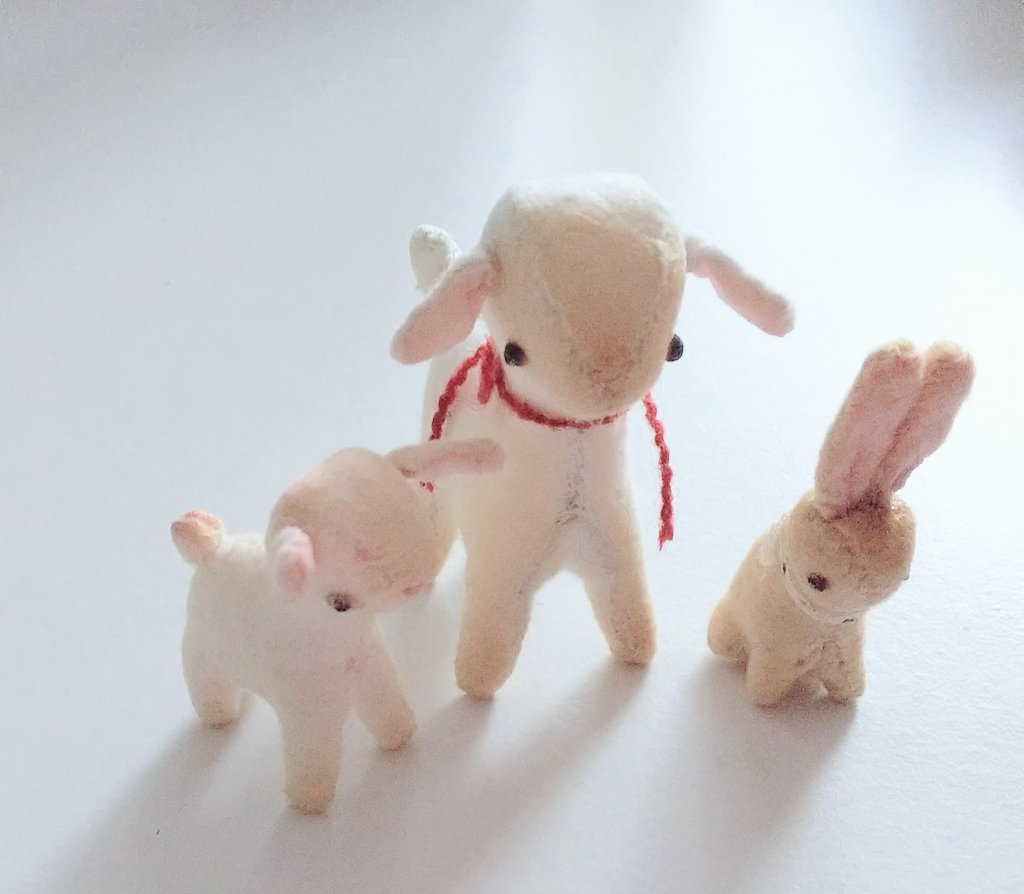 41 204 今週点滴堂さんで、いよいよ始まるmilkypop.展2018にお持ちするウサギと子ヤギのコロコロです。このタイプ以前はよく作ってましたが久しぶりに回顧してみました。2つ一緒に手のひらに乗るサイズです。 18/11/26 08:12